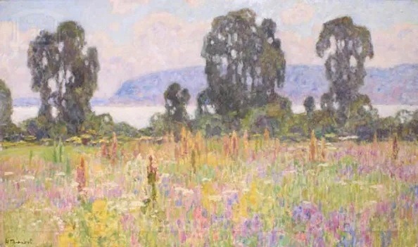 В лугах за Волгой. Картон, масло, 48×81, 1992